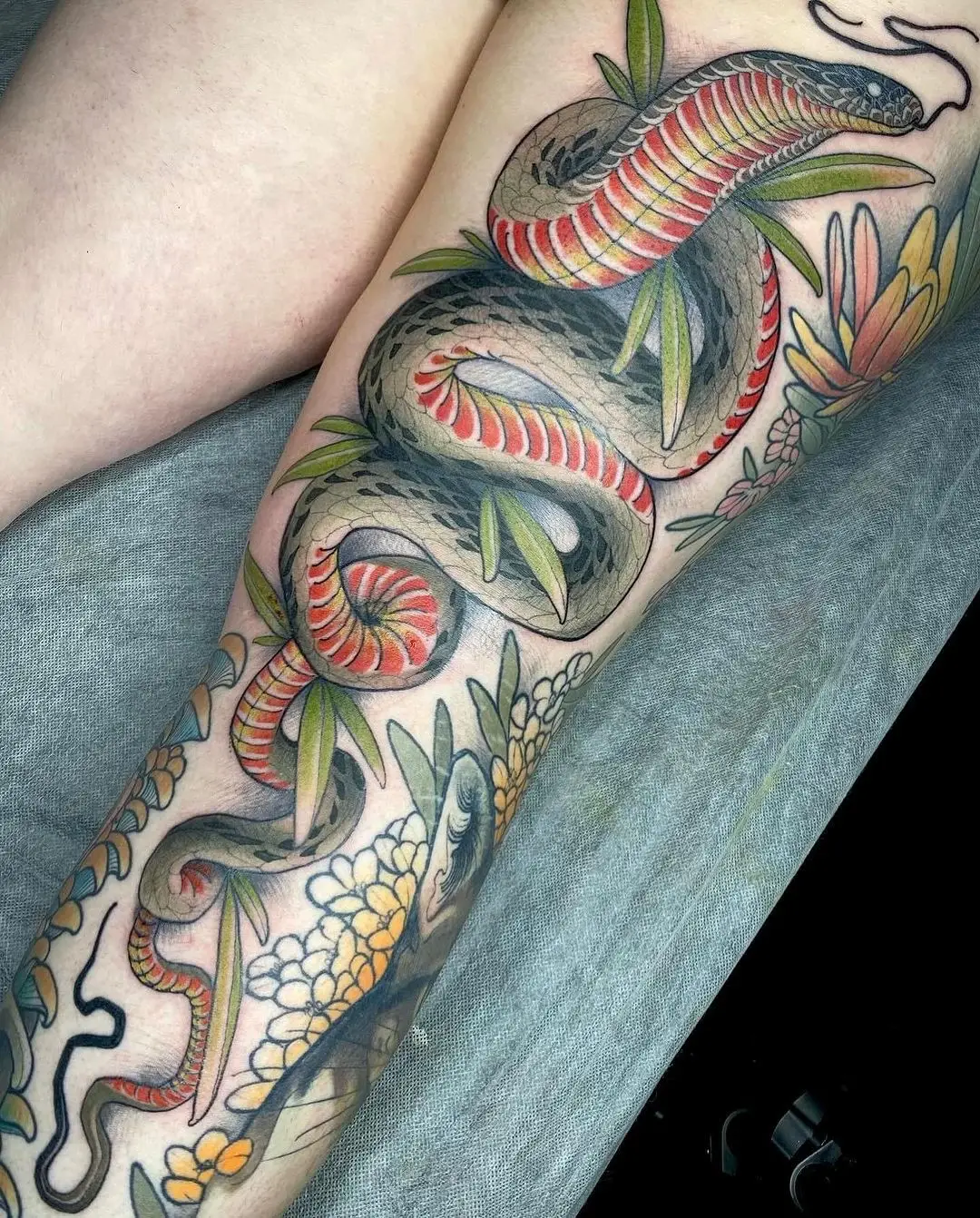 Tim Tavaria from Australia is known for his mastery in neotraditional tattoos, Tim’s work is a vibrant blend of bold lines and bright colors. His unique touch brings a fresh twist to traditional themes, creating art that’s truly eye-catching.